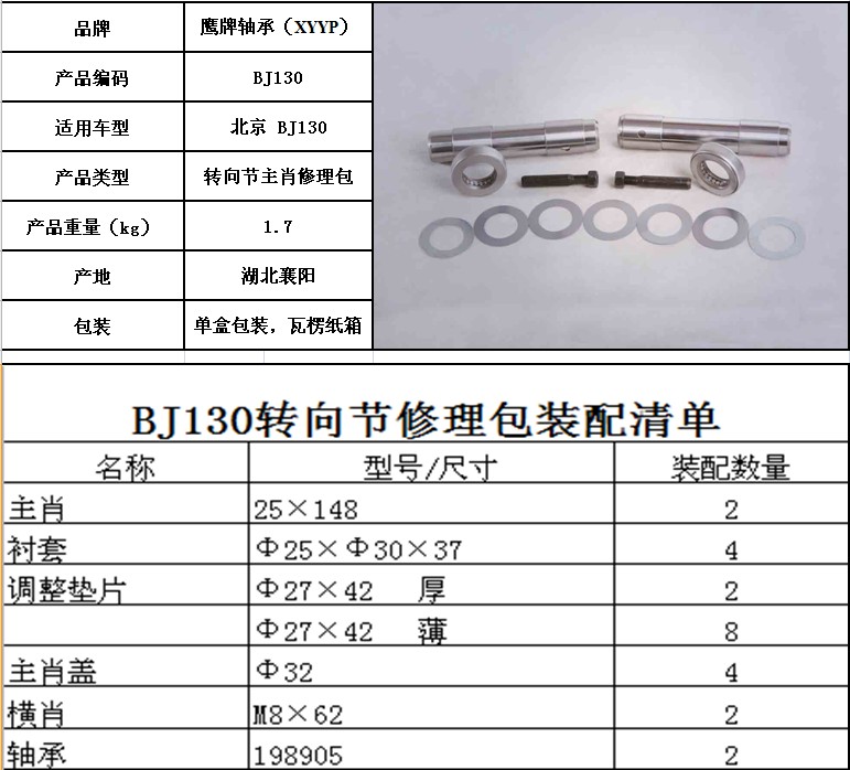 北京 BJ130-轉向(xiàng)節主肖修理包(bāo)